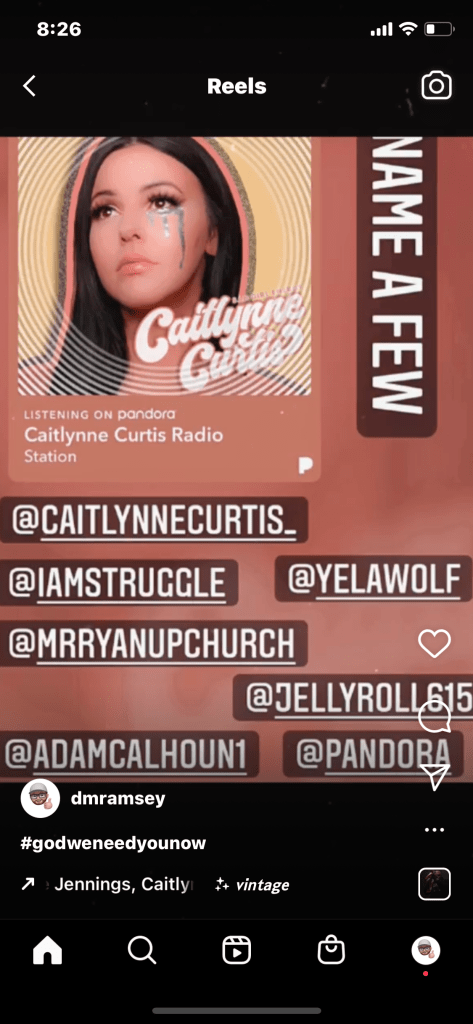 “but #1 pick Caitlynne she’s a bad ass mom and amazing artist! Caitlynne Curtis rocks love the song Therapy and Nashville Strong ”! #caitlynnecurtis