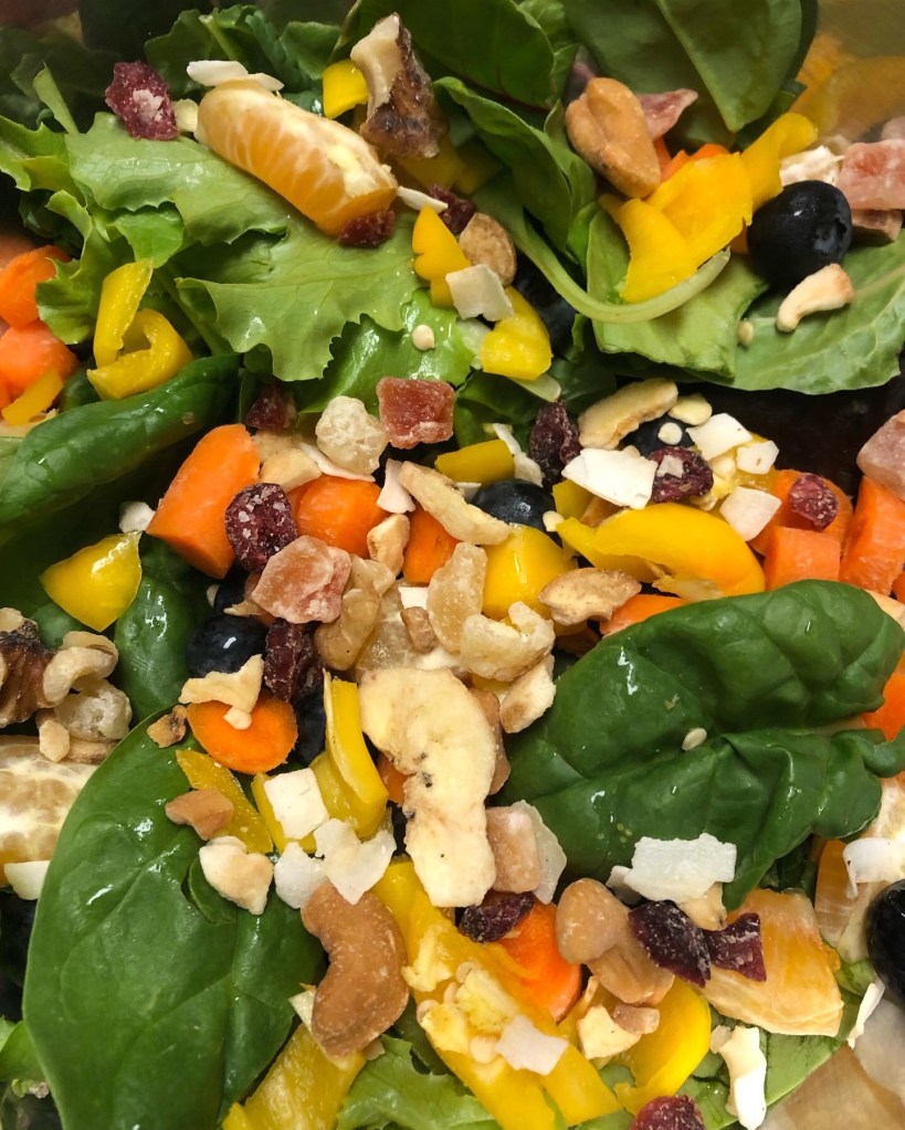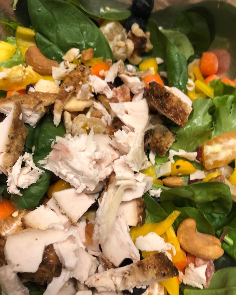 avocadochickensalad done my way mandarin blueberries walnuts papaya cashew coconut chips blueberries mixed greens rotisserie chicken carrots and roasted mini peppers tops with a drizzle of Hemp Honey Honey Mustard and Blue Cheese #highenergyhealthyeating #texashempchef #dmr thanks to @heb I can get fresh with my food #lovemyheb #tossedsalad 💚🤍❤️ Cooking is what I really love thanks to @campbell_cameras I can occasionally film it and take photos #AdvancedOutdoorFilmProduction #filmproduction #broll #uncut sendit be you love it! I’ve been at this #iphoneonly game for a while put down the #dslr and said what can I create with my iPhone? 99% of what I do online is with my #iphone photos videos website all of it. We live in a cool world capture it often share it daily #10K posts is my goal what’s yours? 🔍🧮✂️ sprinkled #trechas lime chili powder from Mexico on top it’s awesome