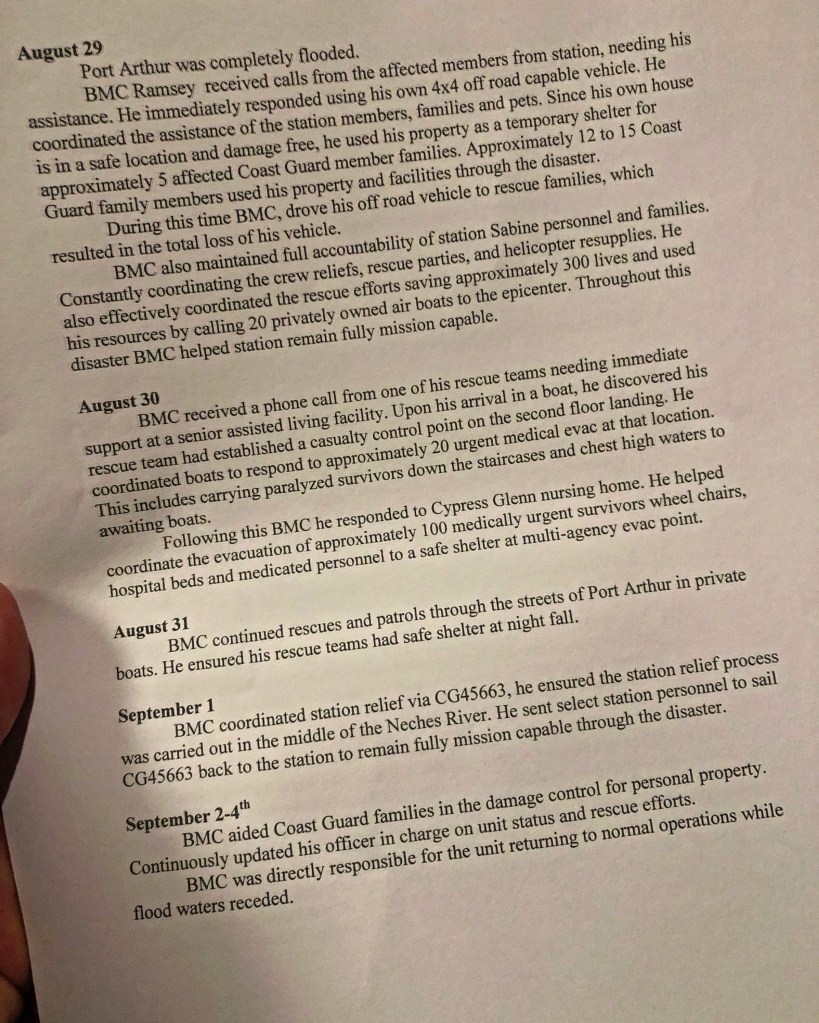Hurricane Rescue “Harvey” Texas On August 15, 2022 By Surfman374 Never Give Up Wow fun read what it was briefly like during #HurricaneHarvey #coastguardrescue #BMCRamsey #Surfman374 #dmr Share this: Click to share on X (Opens in new window) X Click to share on Facebook (Opens in new window) Facebook Click to share on LinkedIn (Opens in new window) LinkedIn Like Loading...