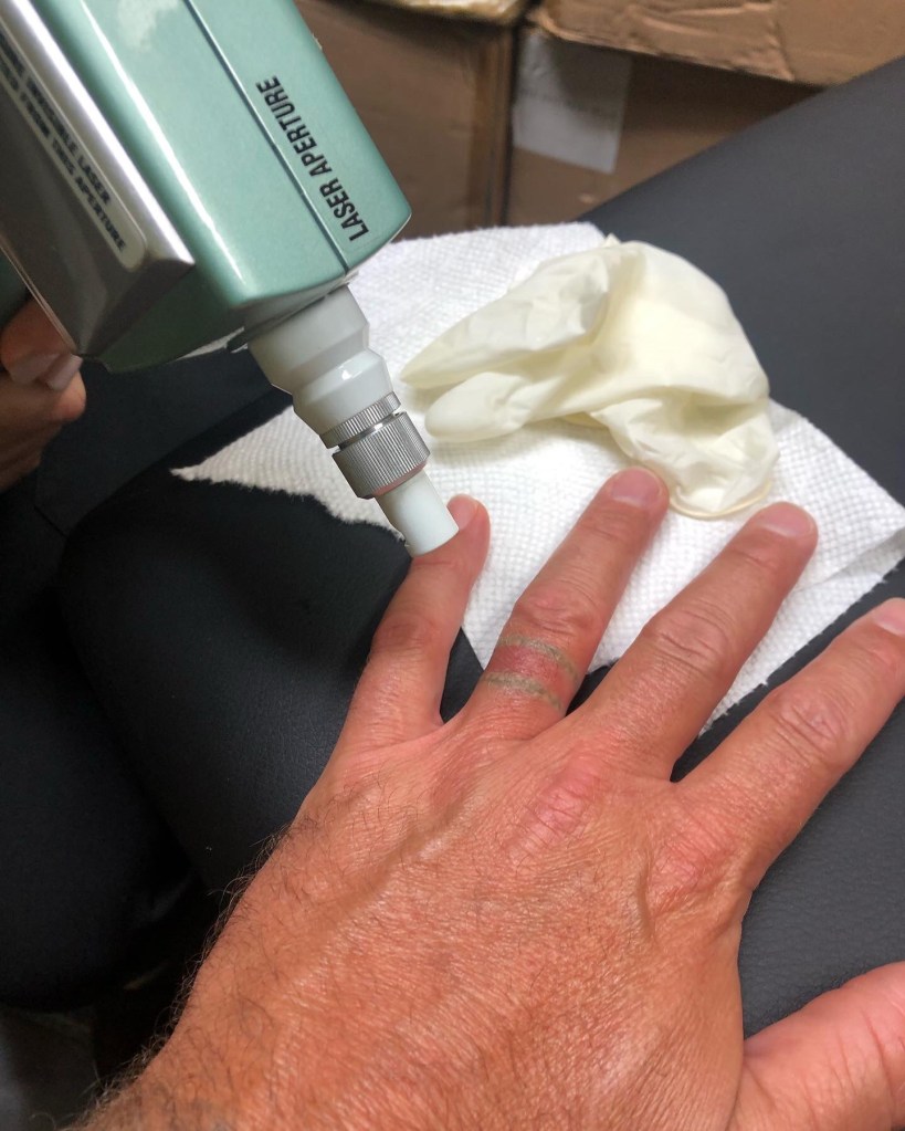 tattooremoval bye bye #ringtattoo I’m #notmarriedjusttoavoidanyconfusion #dmr #surfman374 #tattoo #pinnaclelasertattooremoval let’s just say that session made me jump into the next chapter real fast! Ring finger tattoo removal session 1. Going back in 6more weeks. The pain wasn’t bad it’s like touching a hot fence or peeing on one lmfao I grew up in the country I did both what happens when your kids ya do stupid stuff ya get stupid prizes… @dmramsey