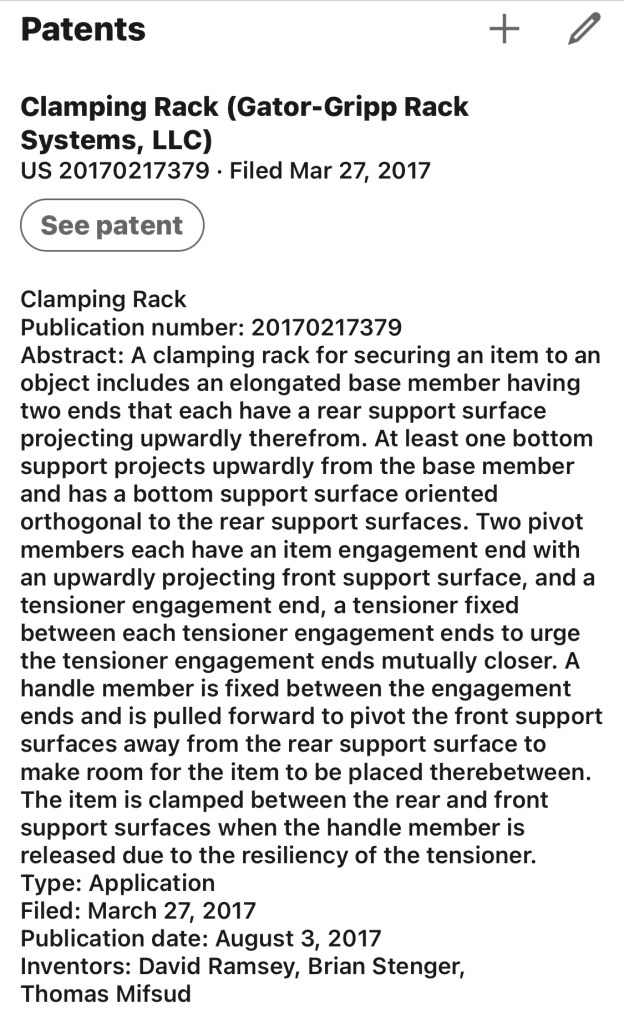 Patent yep did one On August 30, 2022 By Surfman374 Click Link for Patent Info patents have you ever filed one? I have… #PullSetGrip formerly known as #GatorGrippHD #GatorGripp #ProDraw Share this: Click to share on X (Opens in new window) X Click to share on Facebook (Opens in new window) Facebook Click to share on LinkedIn (Opens in new window) LinkedIn Like Loading...