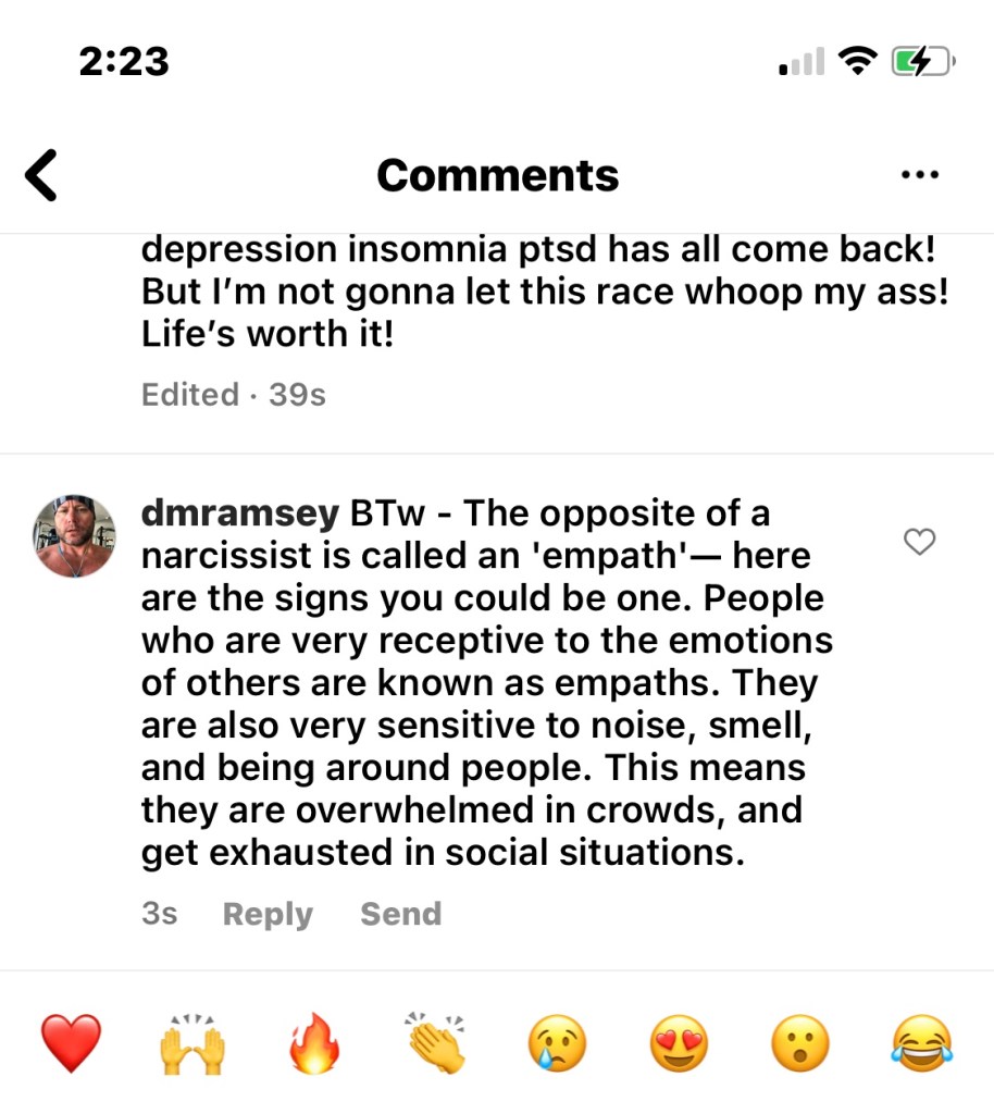 The opposite of a narcissist is called an ’empath’— here are the signs you could be one. People who are very receptive to the emotions of others are known as empaths. They are also very sensitive to noise, smell, and being around people. This means they are overwhelmed in crowds, and get exhausted in social situations. Just so ya know it’s true!!! @dmramsey #dmr #surfman374 I actually had stage fright most of my career why I cried when I got the #AfrasGoldMedal at the #WhiteHouse btw… #Fact I’m a Positive Empath Hyper Creative