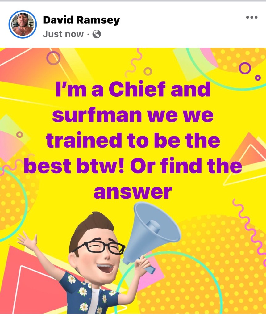 I’m a #Chief and #surfman we we trained to be the best btw! Or find the answer #dmr retired still fighting for my life and others!!! #GOD saved me! For a reason