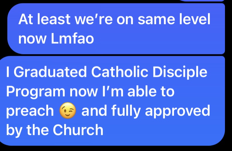 I Graduated Catholic #Disciple Program now I’m able to preach 😉 and fully approved by the Church #dmr sober shit btw