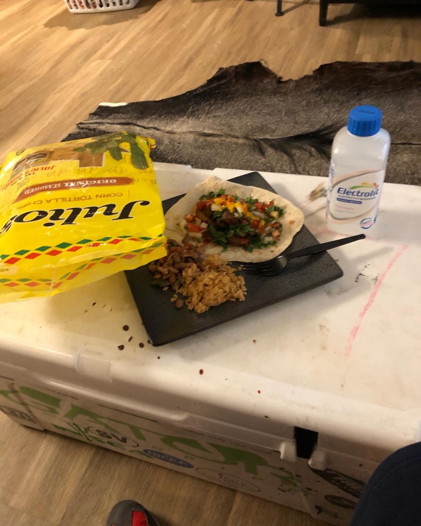 mollejas #tacotuesday #horchata and @julioscornchips #charrobeans #rice @dmramsey why not … 🌵 #highenergyhealthyeating thymus glands