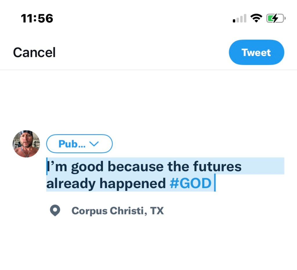 I’m GOOD!!! On October 6, 2022 By Surfman374 I’m good because the futures already happened #GOD #tweet tweet DMRamsey1 DMR DMRAMSEY DMRAMSEY1 Surfman374 Share this: Share on X (Opens in new window) X Share on Facebook (Opens in new window) Facebook Share on LinkedIn (Opens in new window) LinkedIn Like Loading...