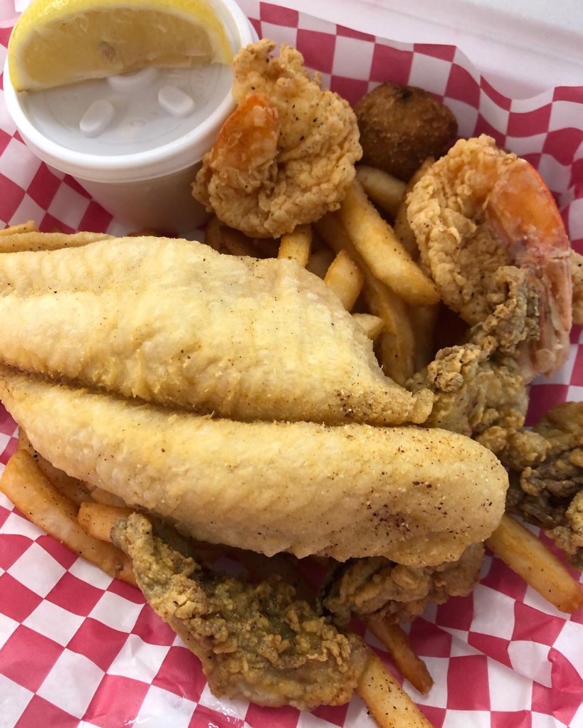 Thanks to @paulsseafoodmarket I don’t have to fish as much I still love #spearfishing @dmramsey #GODBLESSCOMMERCIALFISHING #fishingfamilies feed #nations #commercialfishinglivesmatter #savethefleetsowecaneat #supportyourlocalfishmarket #supportseafoodmarkets I totally recommend going all in with this place for lunch or dinner … #flounder #jumboshrimp #oysters #dmr #surfman374 on Instagram