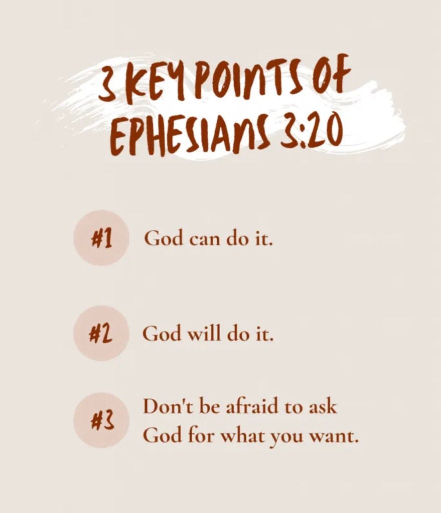 Ephesians 3:20 goes on to express the magnitude of God’s can-do ability as “exceeding abundantly above all that we ask or think.” Not just “above,” not just “exceeding above”—God can do “exceeding abundantly above” all that we ask or think, when we ask and think according to what He has promised in His Word!