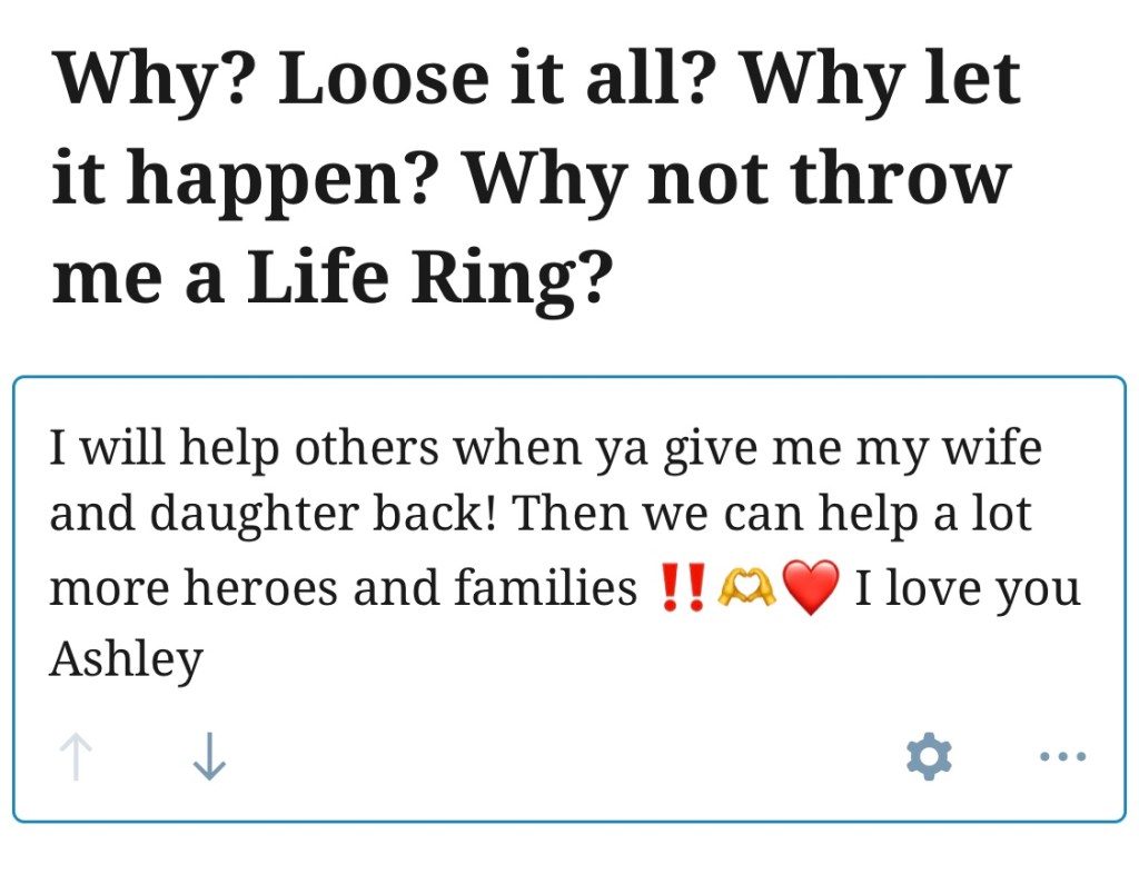 I will help others when ya give me my wife and daughter back! Then we can help a lot more heroes and families ‼️🫶❤️ I love you Ashley