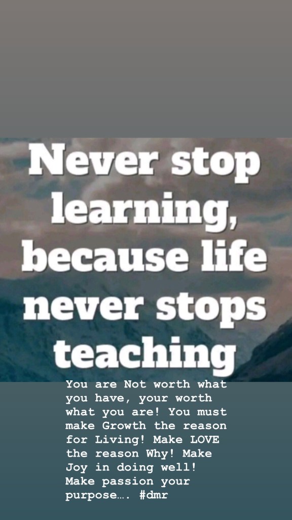 You are Not worth what you have, your worth what you are! You must make Growth the reason for Living! Make LOVE the reason Why! Make Joy in doing well! Make passion your purpose…. #dmr