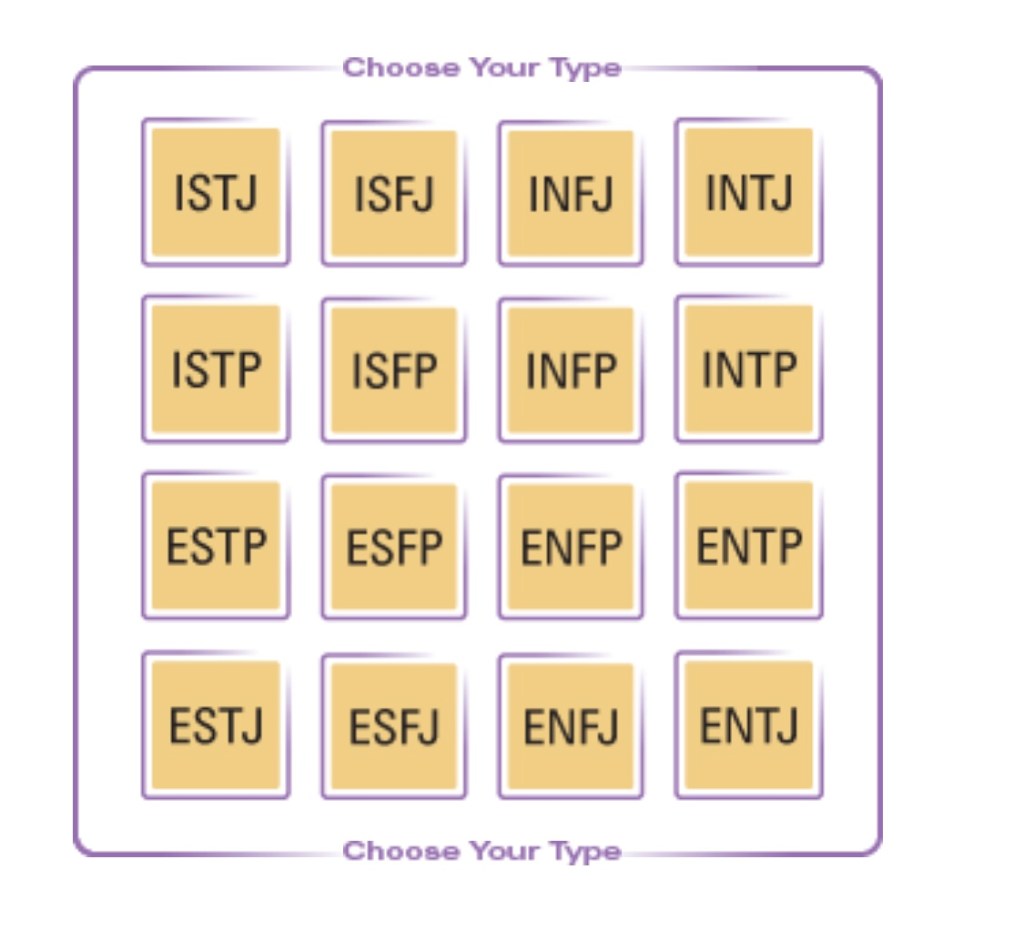 The 16 personality types of the Myers-Briggs Type Indicatorยฎ instrument are listed here as they are often shown in what is called a “type table.”